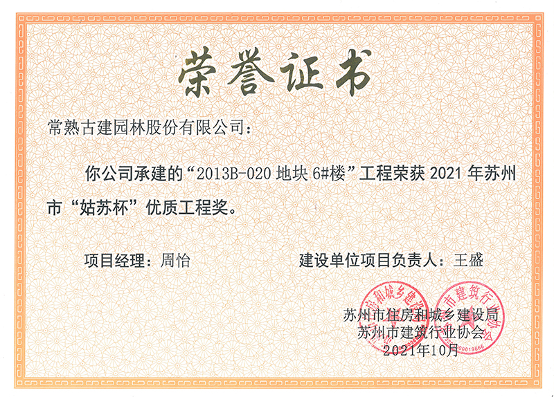 2021年度蘇州市"姑蘇杯"優(yōu)質(zhì)工程