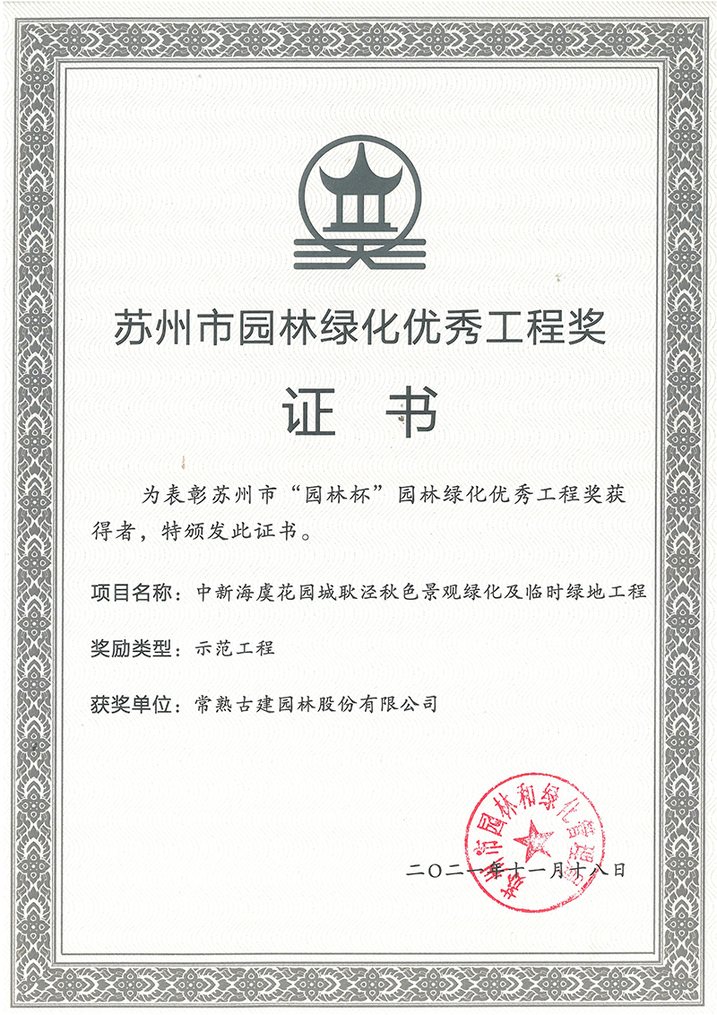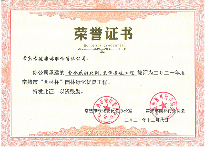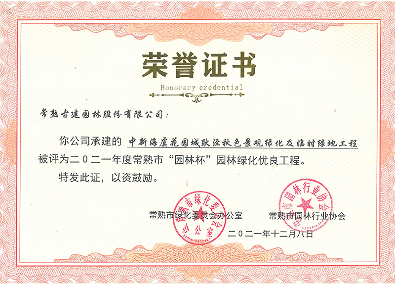 2021年度常熟市"園林杯"園林綠化優(yōu)良工程