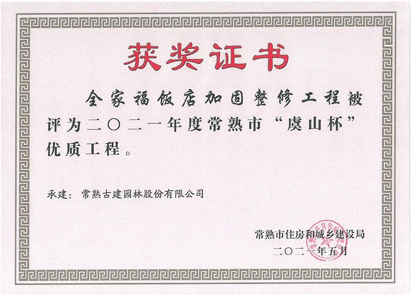 2021年度常熟市"虞山杯"優(yōu)質(zhì)工程