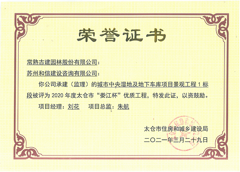 2020年度太倉市"婁江杯"優(yōu)質(zhì)工程