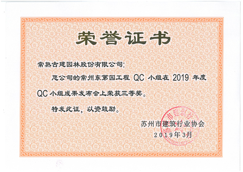 常州東第園工程榮獲QC成果三等獎