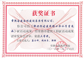 常熟新豐樂菜場工程榮獲QC成果三等獎