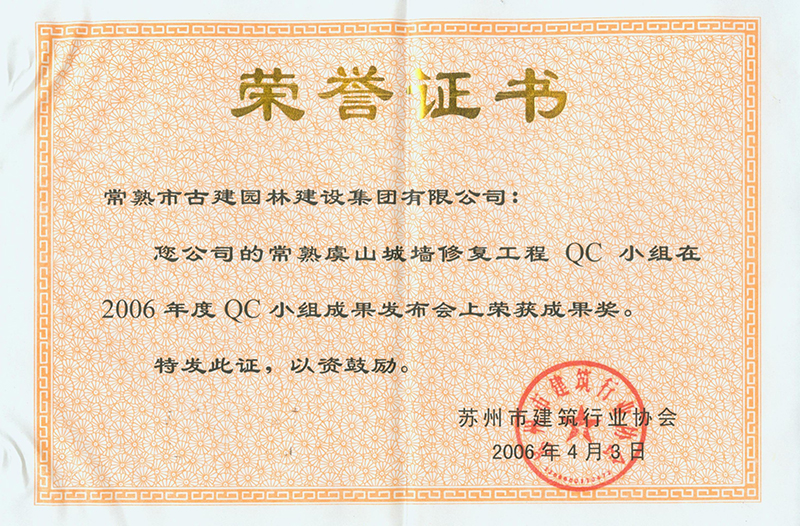 常熟虞山城墻修復工程榮獲QC成果獎