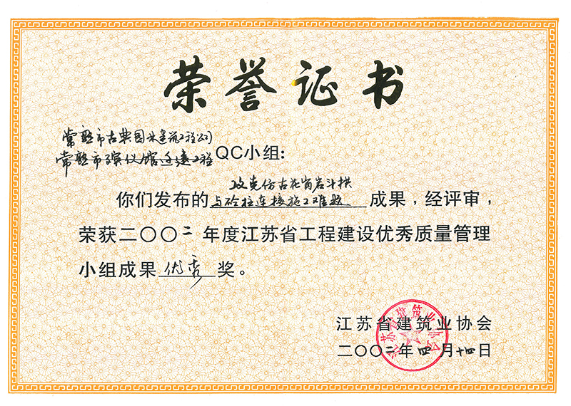 《解決仿古建筑檐口滲水質(zhì)量通病》榮獲QC成果三等獎