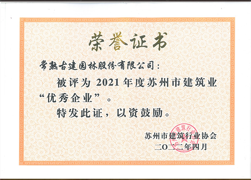 蘇州市建筑業(yè)優(yōu)秀企業(yè)
