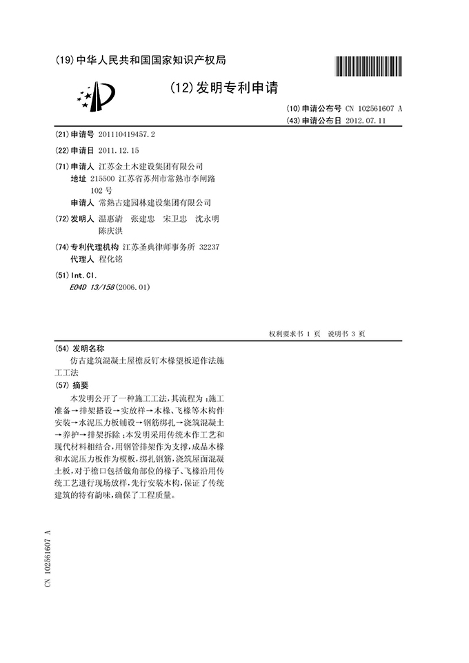 仿古建筑混凝土屋檐反釘木椽望板逆作法施工工法