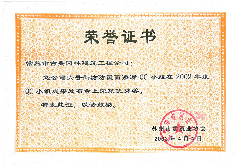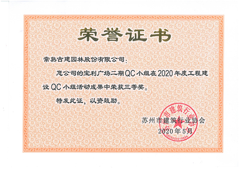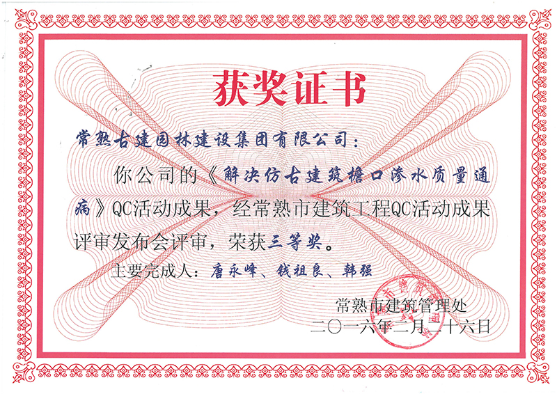《解決仿古建筑檐口滲水質(zhì)量通病》榮獲QC成果三等獎(jiǎng)