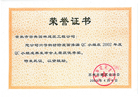 六號(hào)街坊防屋面滲漏榮獲QC成果優(yōu)秀獎(jiǎng)