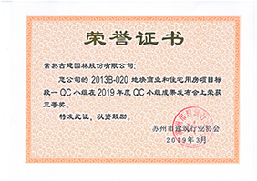 2013B-020地塊商業(yè)和住宅用房項(xiàng)目標(biāo)段一榮獲QC成果三等獎(jiǎng)