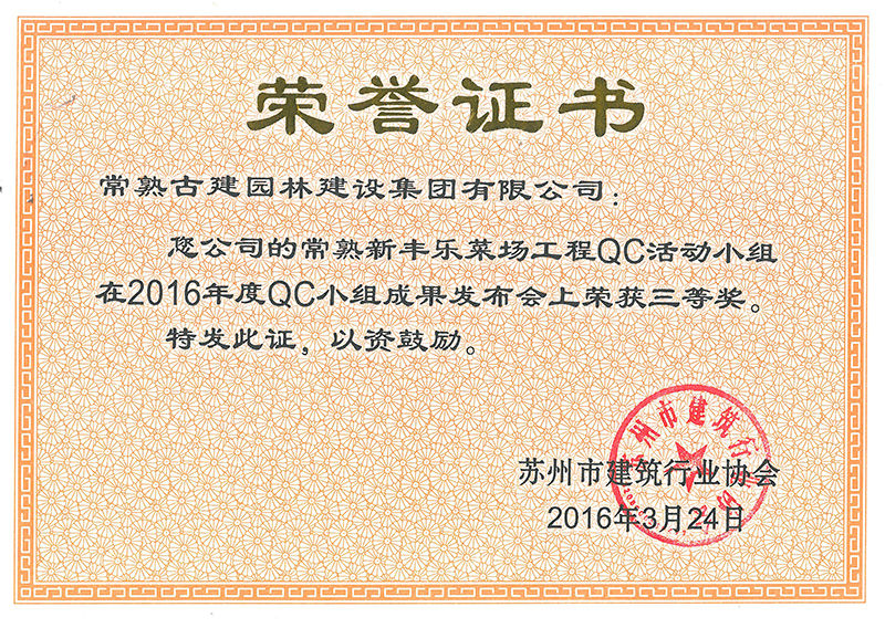 常熟新豐樂菜場(chǎng)工程榮獲QC成果三等獎(jiǎng)