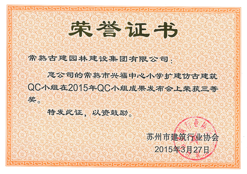 常熟市興福中心小學(xué)擴(kuò)建仿古建筑榮獲QC成果三等獎(jiǎng)